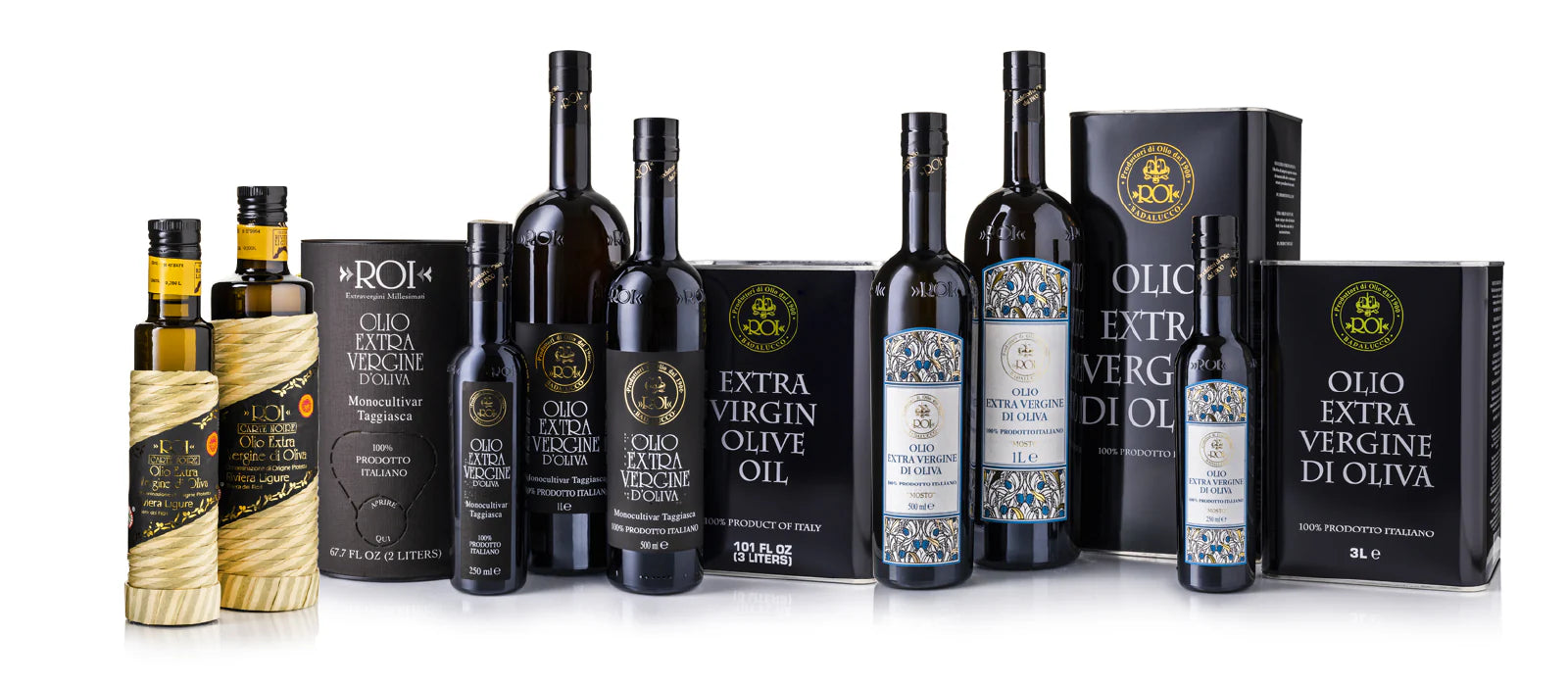 At ROI, we've been pressing olives the same way since 1900. Our extra virgin olive oils come from a single source: the ancient Taggiasca olive groves of Liguria, in northwestern Italy — the same trees that Benedictine monks first cultivated over 1,200 years ago.